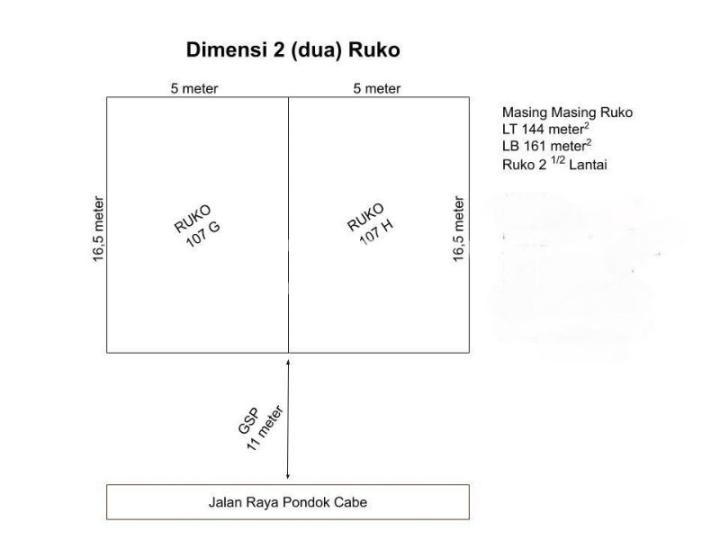 DIJUAL / DISEWAKAN RUKO PONDOK CABE TANGERANG SELATAN BANTEN 2 RUKO GANDENG DIJUAL Rp. 3 M perRUKO DISEWAKAN Rp. 105 JT perTAHUN / perRUKO MIN SEWA 1 TAHUN LT : 144 M2 perRUKO LB : 161 M2 perRUKO DIMENSI TANAH : 16,5 M X 5 M SHM HADAP SELATAN RUKO 2.5 LANTAI NON FURNISHED RUANGAN KAMAR MANDI LISTRIK 4.400 WATT AIR SUMUR BOR PARKIR AREA AKSES JALAN 8 METER